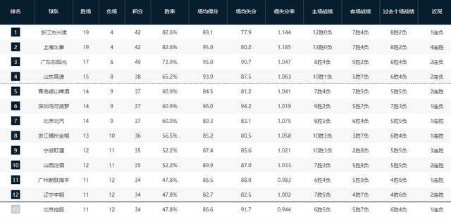 CBA常规赛补赛已经打完,广州男篮主场93-85力克山东男篮,拼下一场关键胜利。这场焦点之战结束之后,第一阶段完成积分榜排名正式出炉,前12名球队排名由高到低如下:广厦、上海、广东、山东、青岛、深圳、北京、浙江、宁波、山西、广州、辽宁。第二阶段常规赛还有19场比赛,从目前各支球队的竞技状态和综合实力来看,宁波、广州这两大黑马很有可能成为季后赛搅局者,除了排名前八球队基本保住季后赛席位之外,剩余四个名额都有一定的变数。
