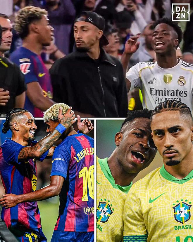 赛后,在双方发生激烈冲突,维尼修斯冲向亚马尔的瞬间,拉菲尼亚也随即冲向了他的国家队队友维尼修斯。随后,两人发生口角争执。