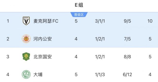 亚冠二E组5轮排名:国安遭绝杀提前出局,澳超、越超球队携手出线