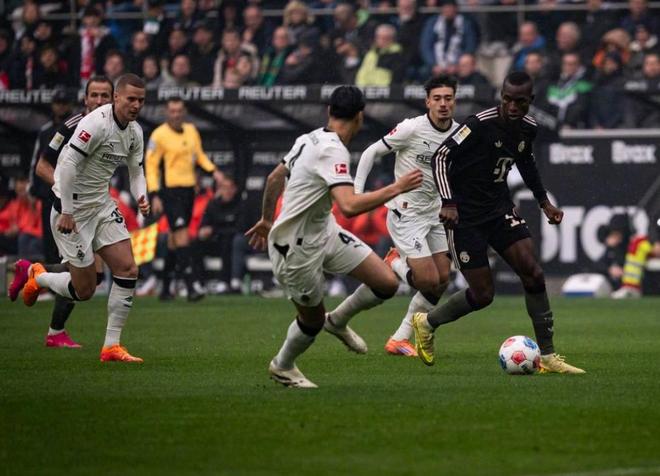 多一人作战的拜仁,随后在门兴大禁区附近开始了破密集防守的演练,第30分钟迪亚斯禁区内头球摆渡,中路跟进的杰克逊没有准备好,浪费了迪亚斯的妙传,半场比赛结束之前,杀到前场的比朔夫完成了一脚远射,但被主队的门将神勇扑出了底线,两支球队也带着0-0的比分,结束了上半场的争夺。
