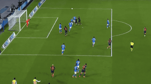 比分落后的国米发动了猛烈的攻势,那不勒斯门前风声鹤唳。第40分钟,国米获得角球,巴斯托尼的头球击中门柱和横梁的交界处。